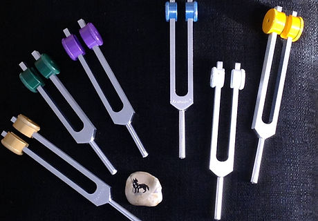 Tuning forks are used to stimulate points and meridians for treatment instead of using acupuncture needles utilizing Traditional Chinese Medicine Theory and Five Element Theory to direct the healing. This is especially appreciated by people that are needle phobic and for children as an alternative to needles. The tuning forks are calibrated to vibrate at the same frequencies of musical notes and when used together on a meridian creating healing intervals. These forks tonify, disperse and clear blocks within the acupuncture meridians with their vibrations.